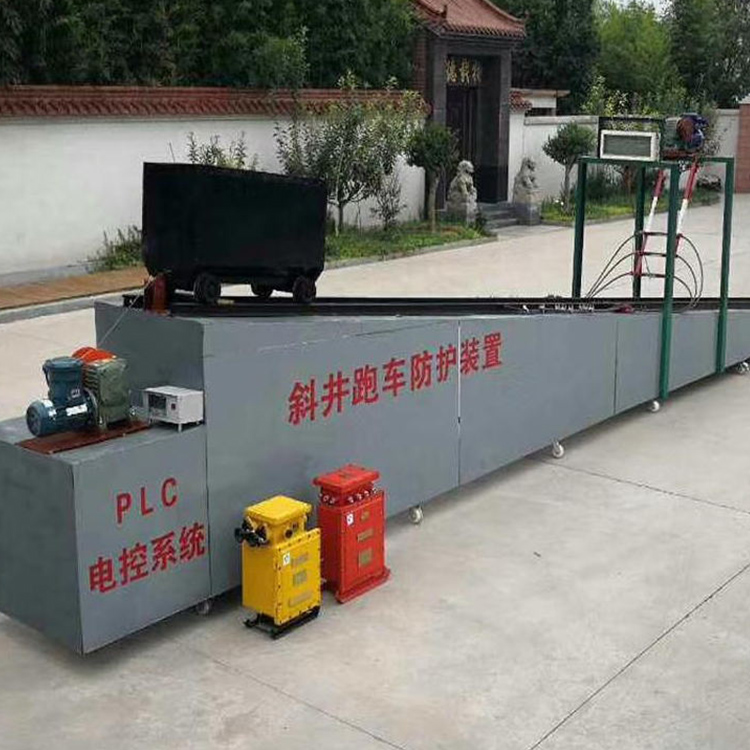 跑車防護(hù)裝置又名斜井防跑車安裝裝置,是煤礦斜井提升運(yùn)輸?shù)闹匾踩O(shè)備,安裝在煤礦井下斜巷內(nèi),采用位置傳感器獲取與絞車同步運(yùn)行的控制信號,使擋車網(wǎng)處于“常閉式”防護(hù)狀態(tài),如因斷繩、脫鉤等原因而發(fā)生跑車事故,可采用柔性緩沖器來進(jìn)行有效攔截。